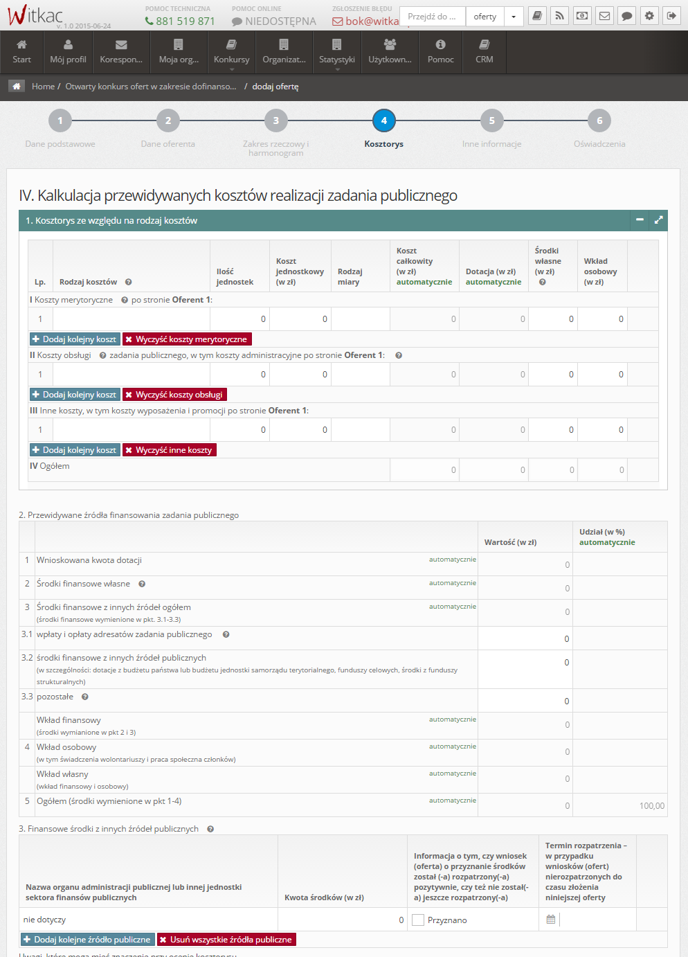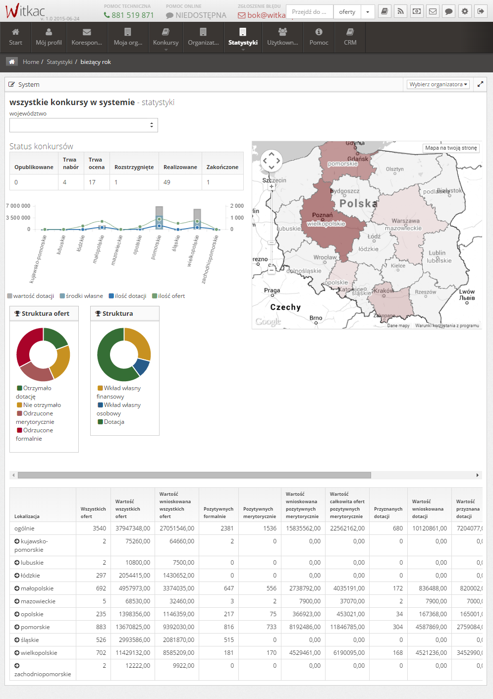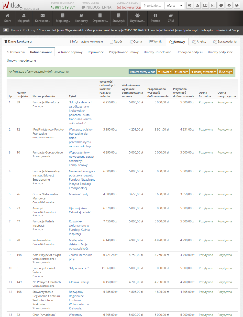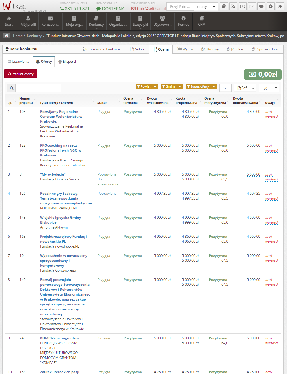 Wszystkie dane dotyczące konkursów, oferty, umowy, sprawozdania i pozostała dokumentacja konkursowa jest cały czas dostępna w systemie.